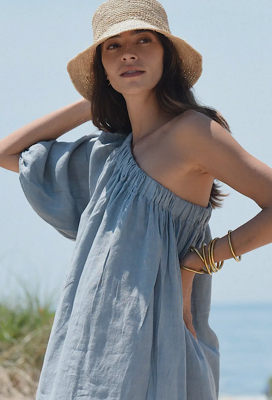 wears The Delancey Dress (right) and The Rosaria Dress (left) on set!
